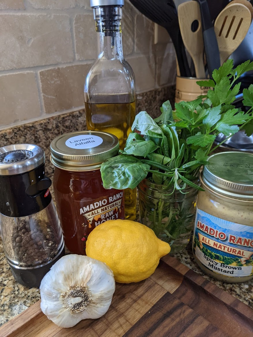 Did you know that many of the products at the Amadio Ranch make excellent ingredients for marinades and sauces? Marinades are a great way to add flavor and tenderize meat. There are literally thousands if great flavor combinations, but a basic marinade has 3 simple components: